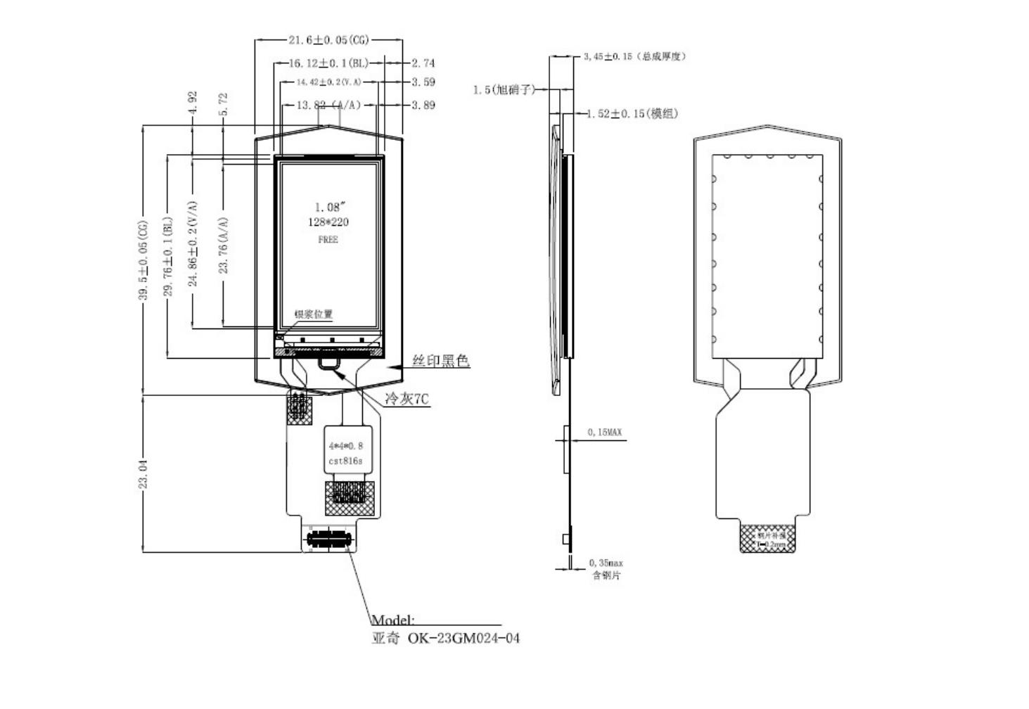 1.08 Inch Bar Type TFT Lcd Module 128x220 Resolution 4SPI Interface Images |